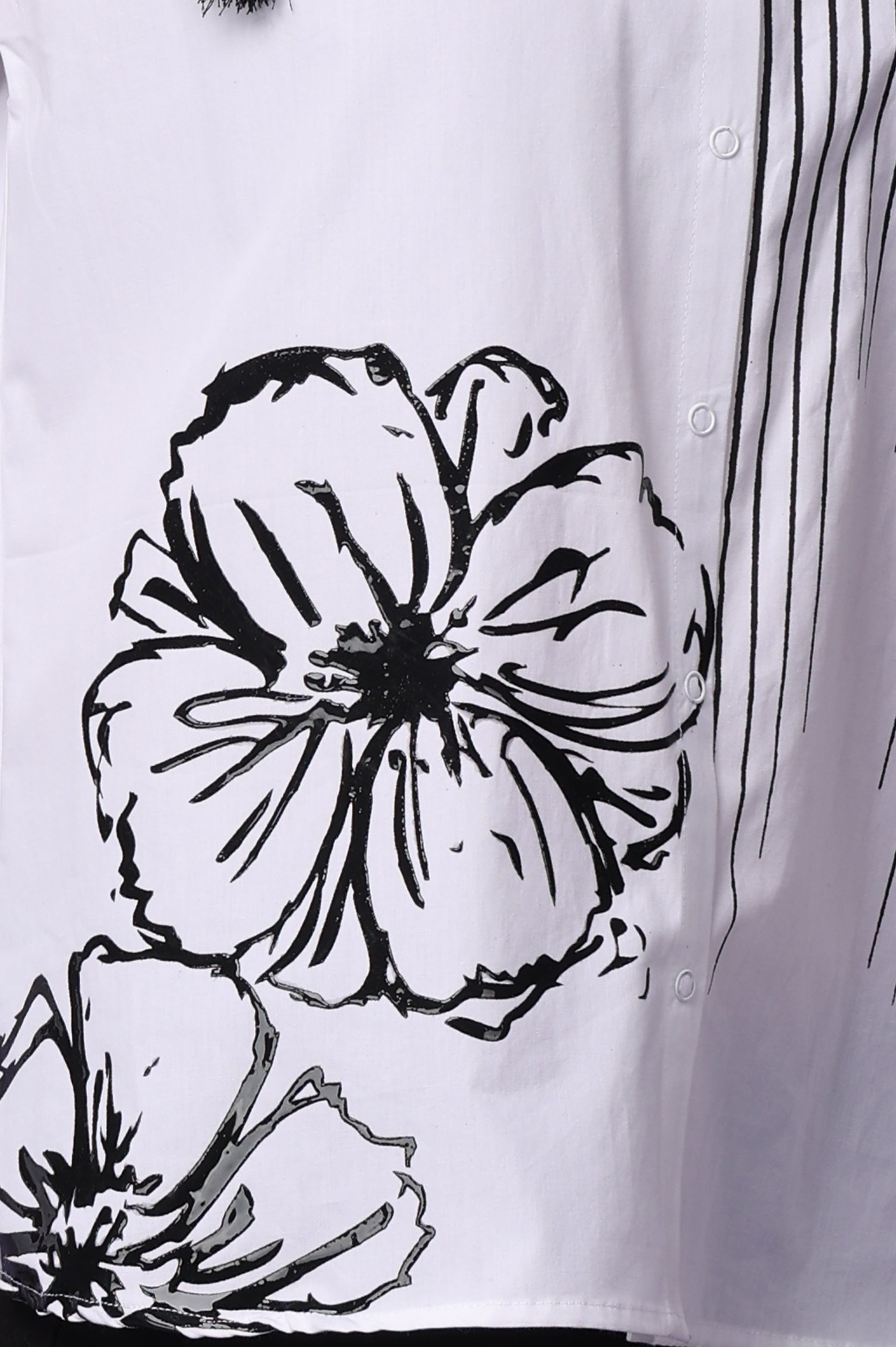 Elevate your wardrobe with our meticulously crafted shirt, made from premium cotton for ultimate comfort and durability. Available in classic white, this shirt features full-length sleeves and is secured with convenient snap buttons. The standout feature of this shirt is its unique caviar print, which provides a distinctive raised texture that enhances the fabric's visual appeal and instead of regular flat print. Tassels add a touch of sophistication and flair, making it perfect for both casual and formal settings.