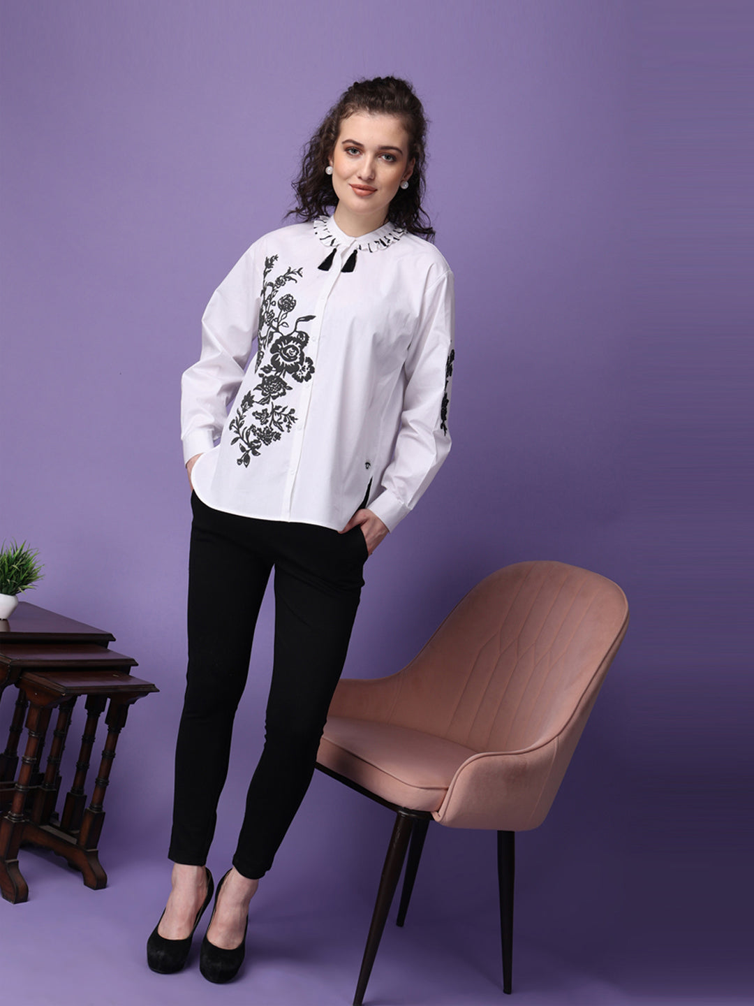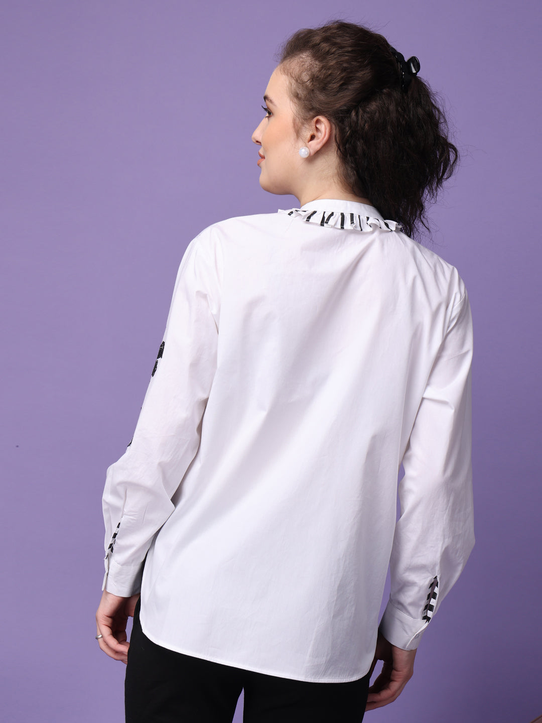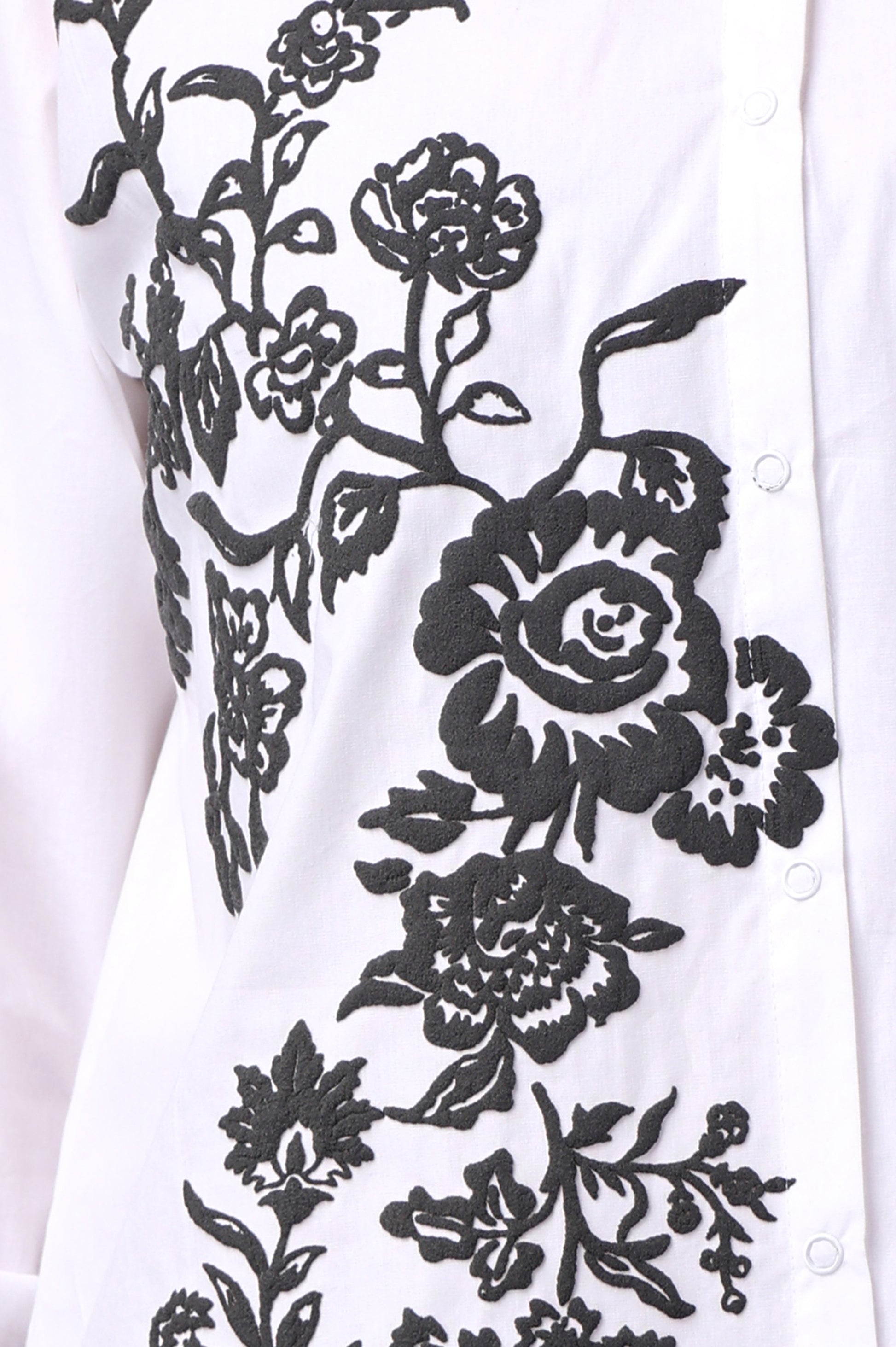 Elevate your wardrobe with our meticulously crafted shirt, made from premium cotton for ultimate comfort and durability. Available in classic white, this shirt features full-length sleeves and is secured with convenient snap buttons. The standout feature of this shirt is its unique caviar print, which provides a distinctive raised texture that enhances the fabric's visual appeal and instead of regular flat print. Tassels add a touch of sophistication and flair, making it perfect for both casual and formal settings.