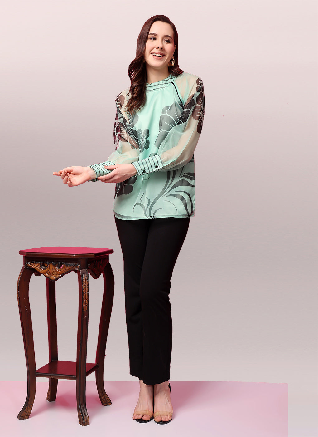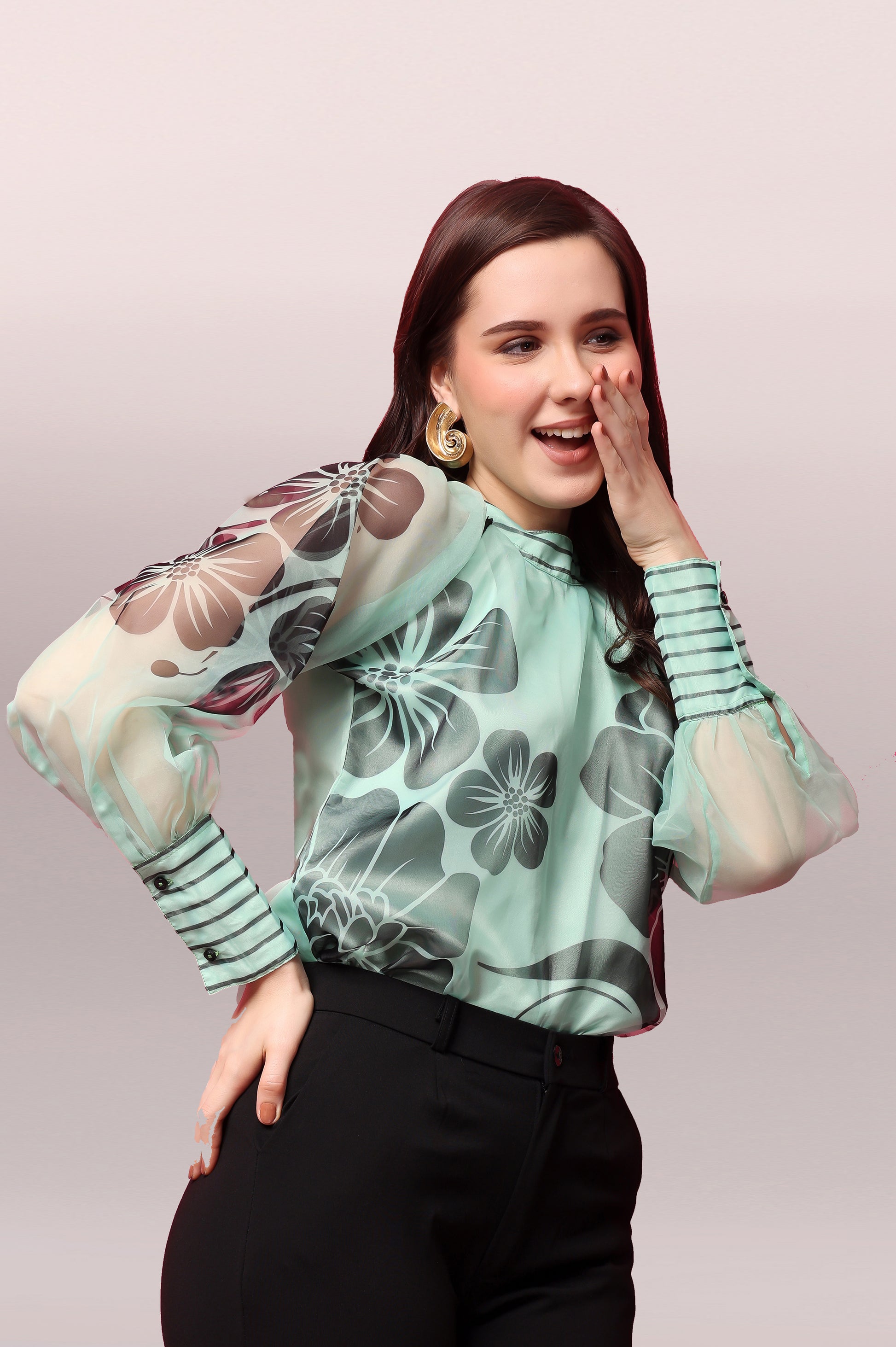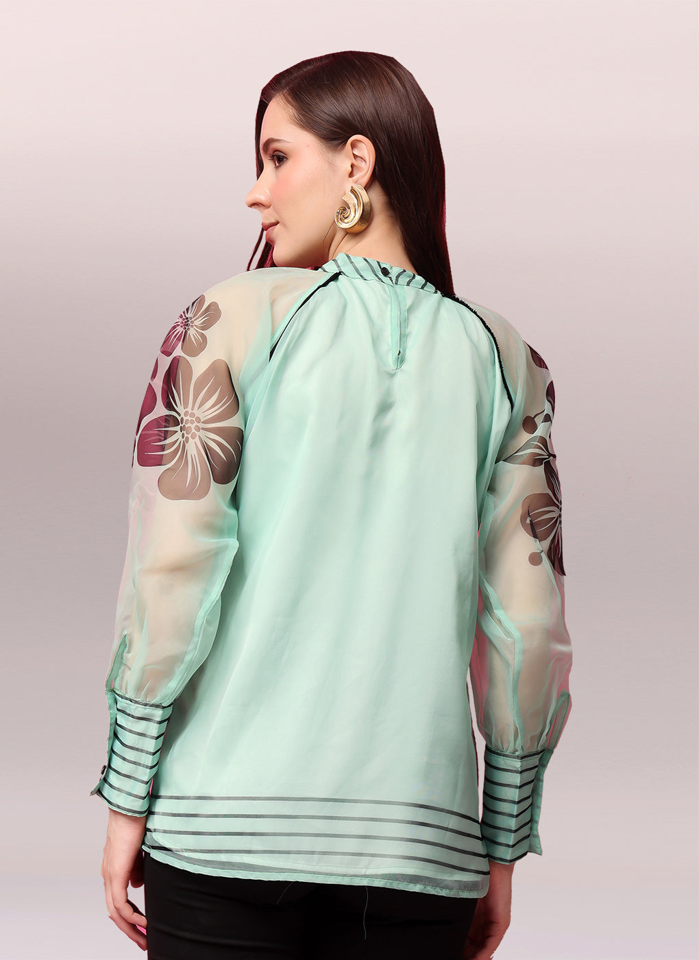 Light, elegant, and easy to style—this printed organza shirt is made to stand out. It features a soft, sheer fabric with a unique all-over print, finished with tassels that add movement and a stylish touch. The relaxed fit makes it comfortable to wear, while the details give it a refined, high-end look.