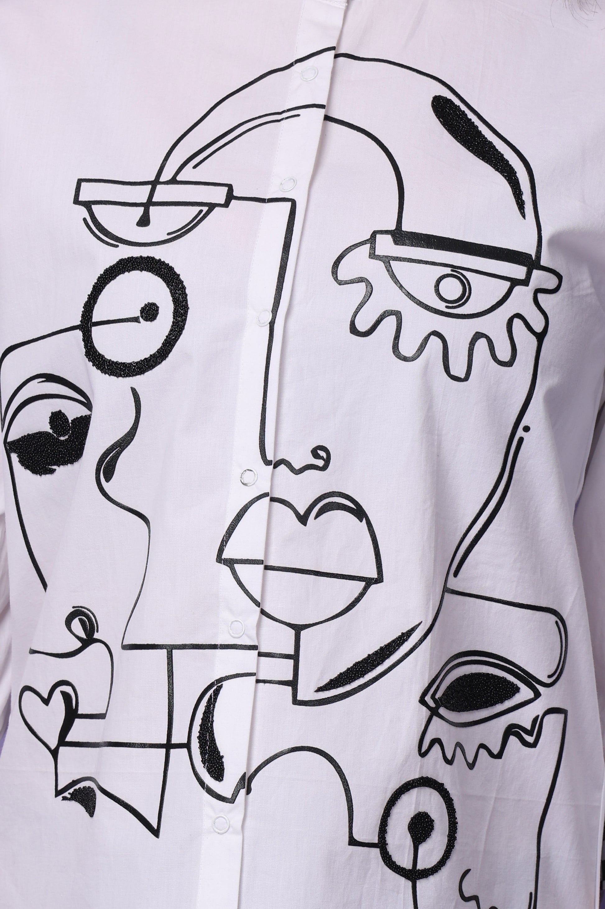 Elevate your wardrobe with our meticulously crafted shirt, made from premium cotton for ultimate comfort and durability. Available in classic white, this shirt features full-length sleeves and is secured with convenient snap buttons. The standout feature of this shirt is its unique caviar print, which provides a distinctive raised texture that enhances the fabric's visual appeal and instead of regular flat print. Tassels add a touch of sophistication and flair, making it perfect for both casual and formal settings.