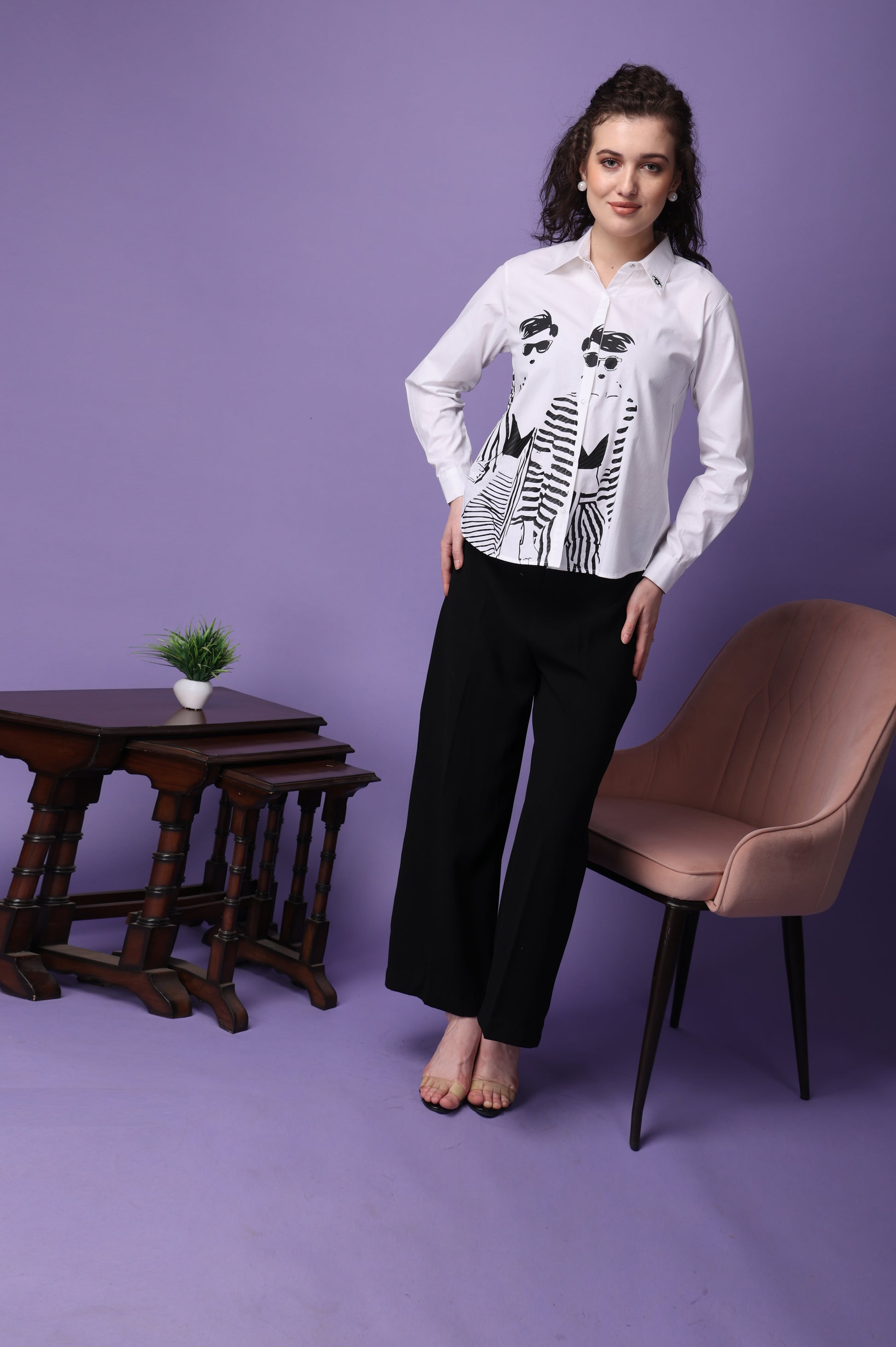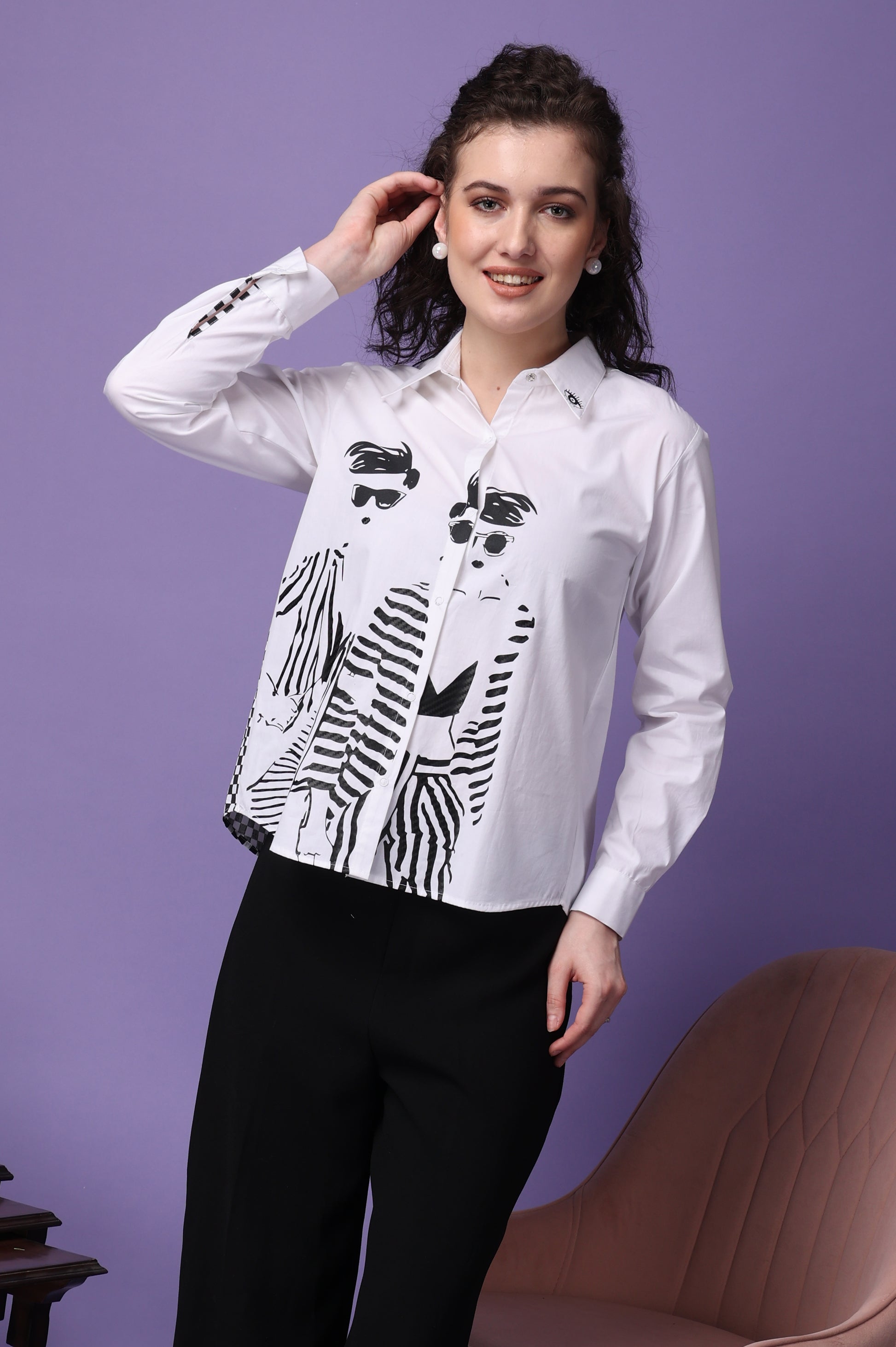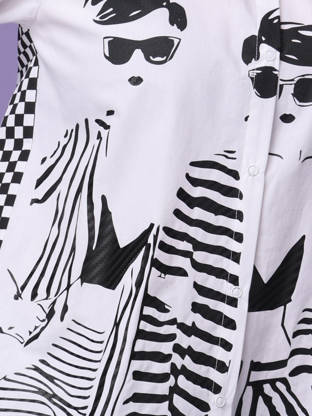 Elevate your wardrobe with our meticulously crafted shirt, made from premium cotton for ultimate comfort and durability. Available in classic white, this shirt features full-length sleeves and is secured with convenient snap buttons. The standout feature of this shirt is its unique caviar print, which provides a distinctive raised texture that enhances the fabric's visual appeal and instead of regular flat print. Tassels add a touch of sophistication and flair, making it perfect for both casual and formal settings.